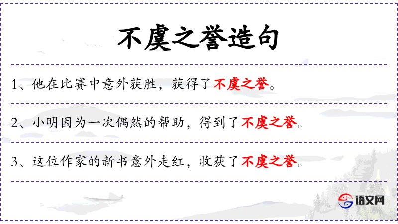 1. 【不虞之誉】 - 虞:料想;誉:称赞。没有意料到的赞扬。