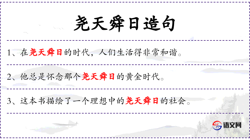 - 宾语:一个理想中的尧天舜日的社会