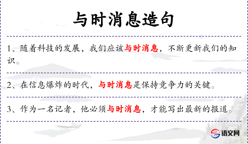 1. 【与时消息】 指事物无常,随时间的推移而兴盛衰亡。消,消亡。息,孳生。