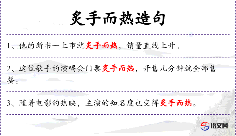 1. 【炙手而热】 - 炙:烤。手摸上去感到热得烫人。比喻权势大,气焰盛,使人不敢接近。