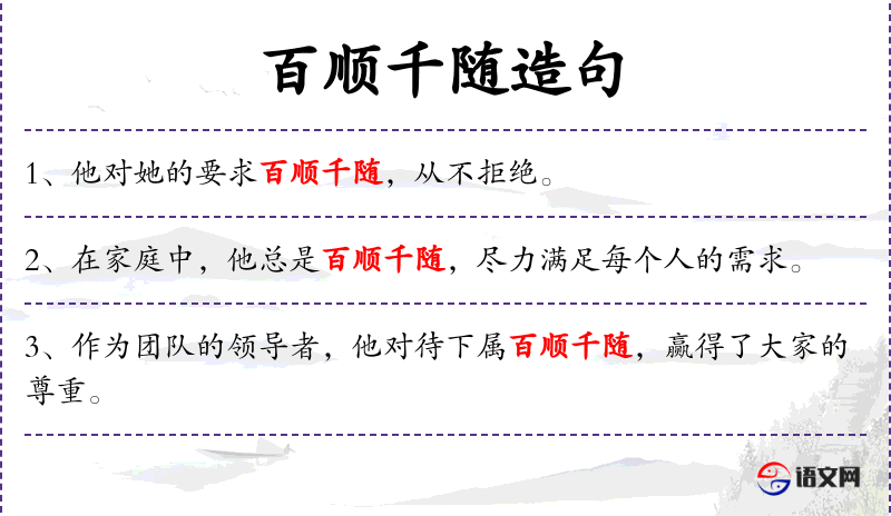5. 【百顺千随】 - 形容什么都顺从。同“百依百随”。