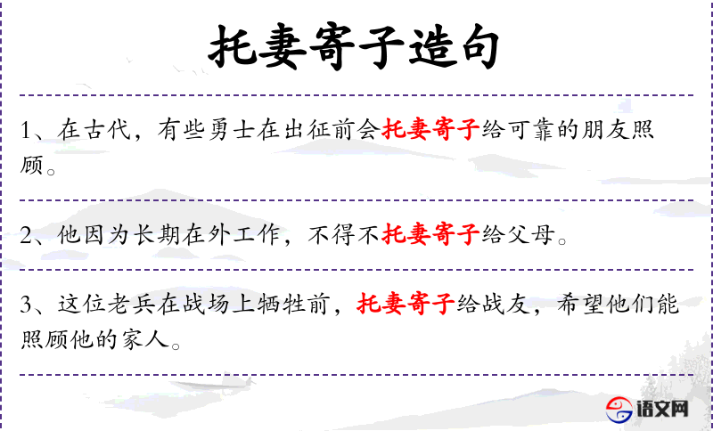 - 托妻寄子:一种表达方式,意指将妻子和孩子托付给他人照顾,以确保他们的安全。