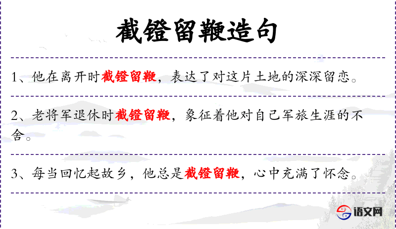 - 截镫留鞭:这一成语源自**古代,常用于形容决心不再回来的离别场景。