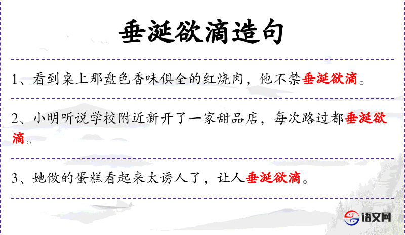- 宾语:无直接宾语,但“让人垂涎欲滴”中的“人”可以视为间接宾语