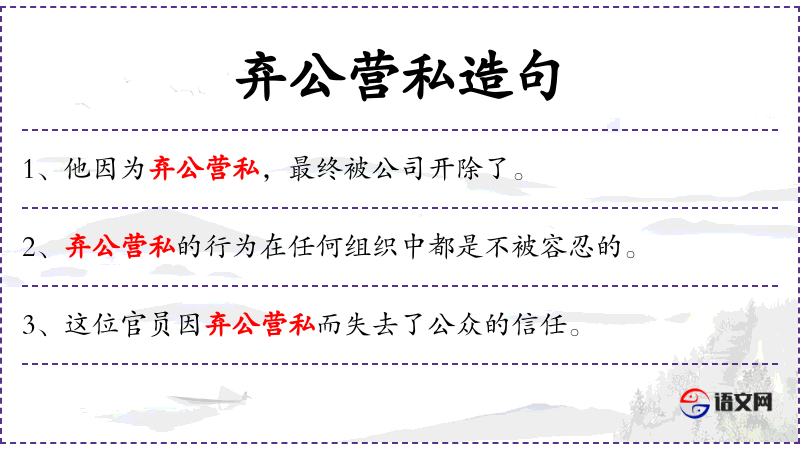 - 弃公营私:成语,意思是放弃公共利益,追求私人利益