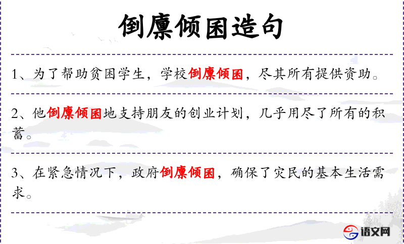 - 倒廪倾囷:形容竭尽全力,不遗余力。