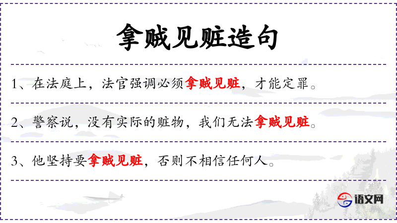 - “拿贼见赃”是一个成语,强调证据的重要性,这在法律领域尤为重要。
