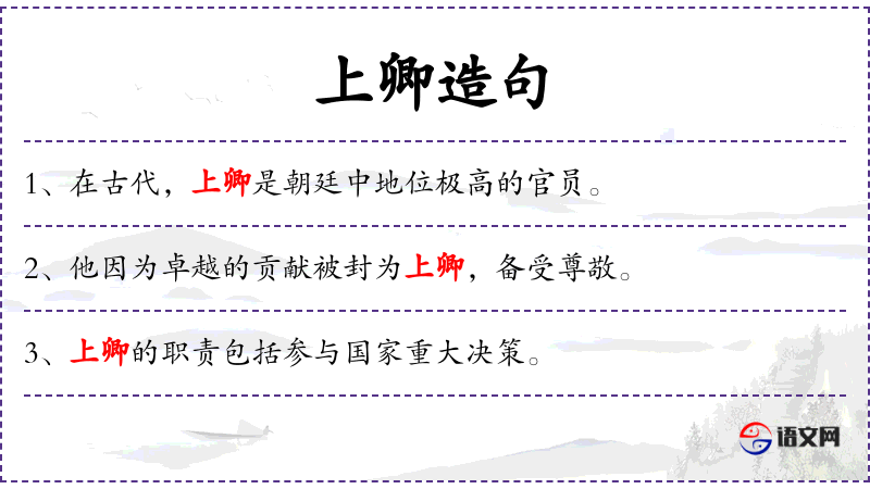 1. 【上卿】 - 古官名。周制天子及诸侯皆有卿,分上中下三等,最尊贵者称为上卿”◇泛指朝廷重臣上卿才大名不朽,早朝至尊暮求友。