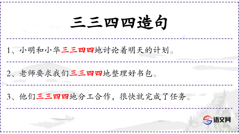 - 三三四四:副词,可能表示分享的方式或状态,具体含义需要结合语境理解。