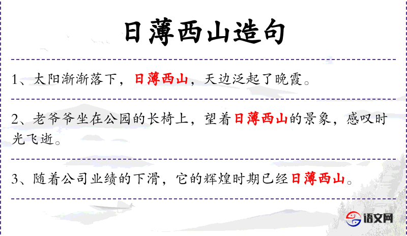 - *日西山:这个成语在文化中有着悠久的历史,常用来比喻人的晚年或事物的衰落。