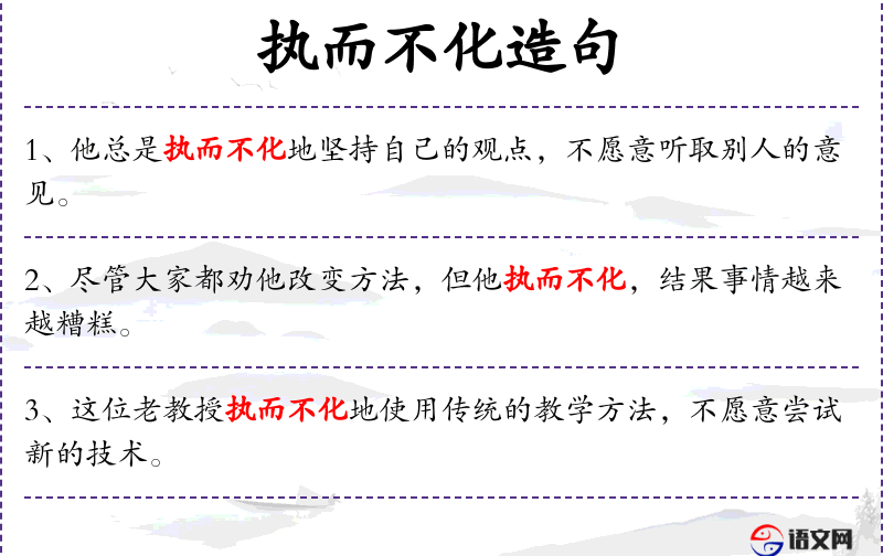 句子:“这位经理执而不化地遵循过时的管理理念,导致公司业绩下滑。”