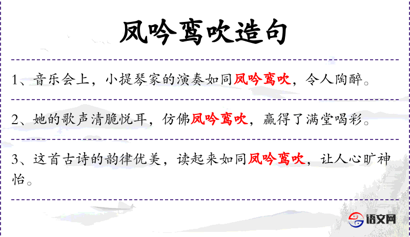 - 凤吟鸾吹:这个成语源自**古代神话,凤凰和鸾鸟都是吉祥的象征,其鸣叫被认为是极为美妙的声音。