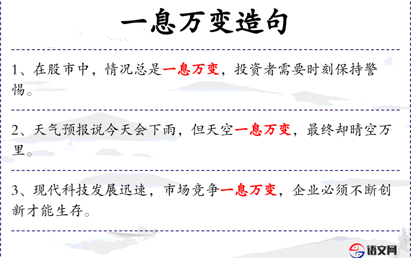 - 一息万变:形容变化非常快,几乎每一瞬间都在变化