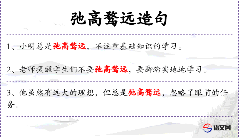 - 不弛高骛远:意为不贪图远大的目标,不脱离实际。