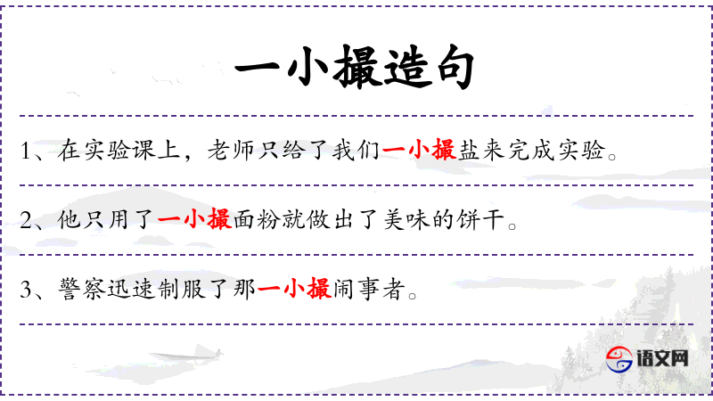 - 日文:使用了“ほんの少し”来表达“一小撮”。