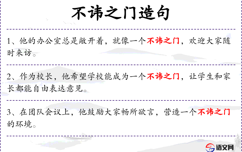 - 不讳之门:比喻性的表达,意味着一个开放和包容的环境。