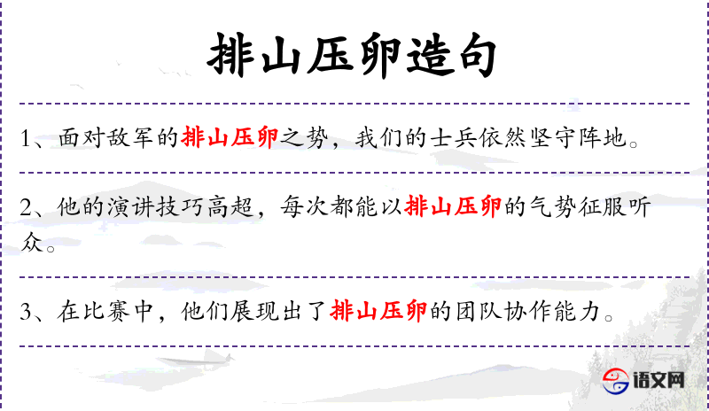 - 排山压卵:这个成语源自**古代,反映了中华文化中对力量和压倒性优势的重视。