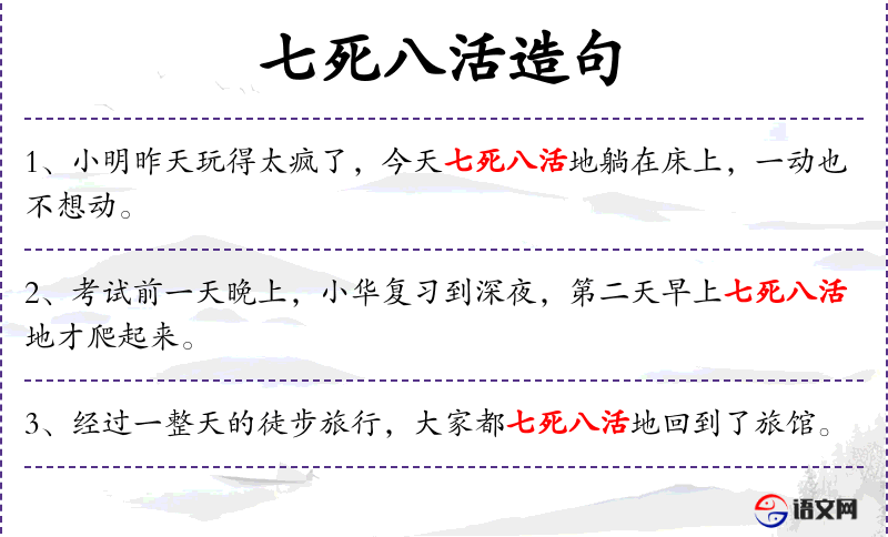 - 七死八活:形容非常疲惫,几乎要死掉的样子。