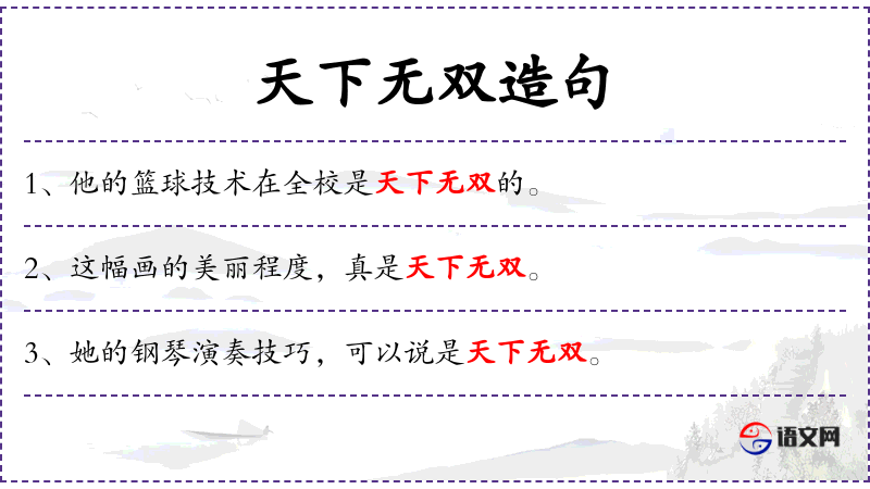 句子:“他的英语口语水平,在班级里是天下无双的。”