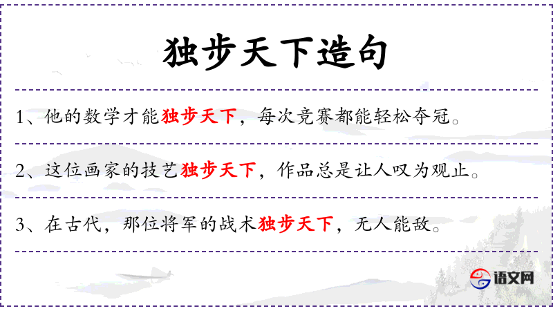 4. 【独步天下】 - 独步:独一无二,特别突出。超群出众,无人可比。