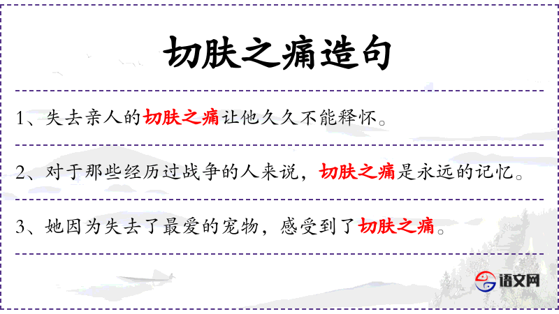 - 切肤之痛:比喻极深的痛苦,源自实际的切肤之痛。