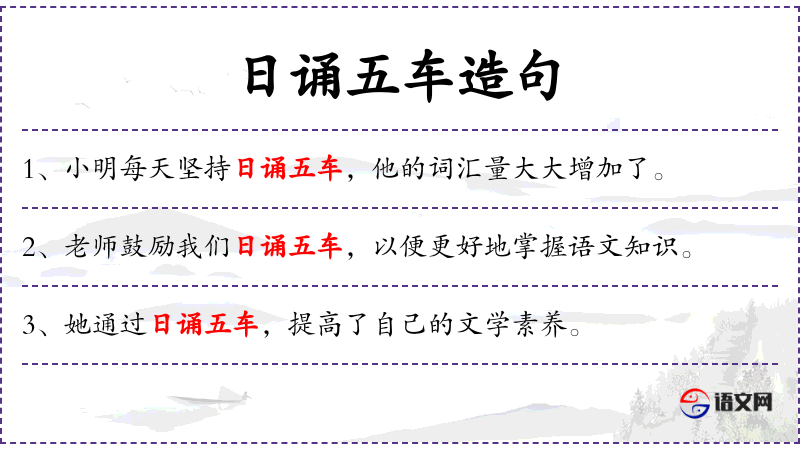 3. 【日诵五车】 一天诵读好多书。五车,形容书多。