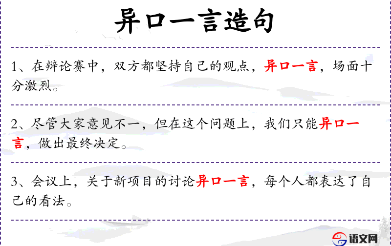 句子中“异口一言”这个成语体现了中文文化中对团队协作和共识的重视。这个成语源自《左传·僖公二十四年》:“异口同声”,形容大家意见一致。
