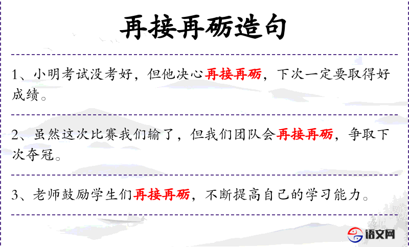 - 补语:再接再砺