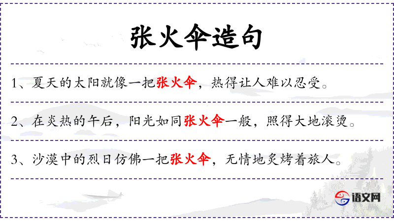 句子中的“张火伞般的”可能源自**传统文化中对自然现象的比喻。这种比喻在文学作品中常见,用来形容阳光的强烈和集中。