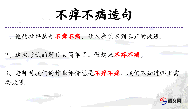 - 不痒不痛:成语,形容批评或指责不够深刻,没有触及要害。