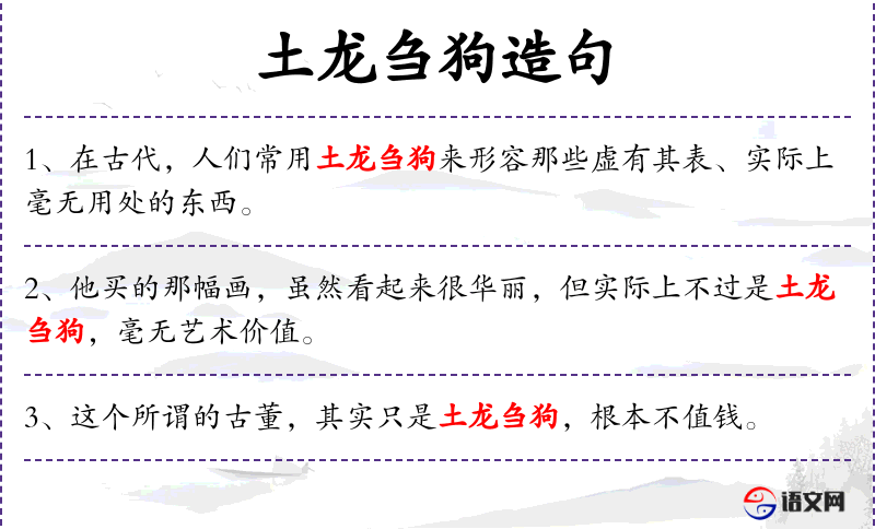 - 土龙刍狗:这个成语源自**古代,用来形容无用或不值一提的东西。