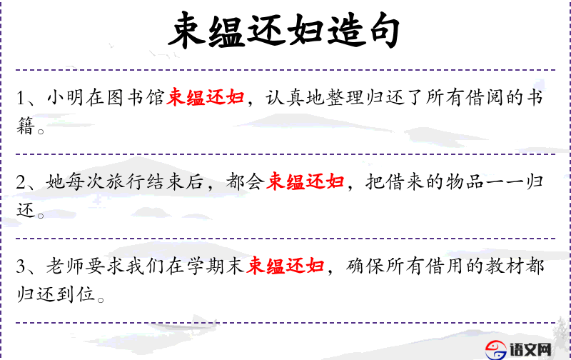 他是个守信用的人,每次借东西都会按时束缊还妇。