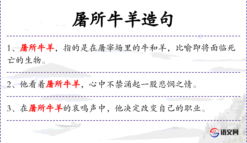 - “屠所”指的是屠宰场,“牛羊”是屠宰的对象。