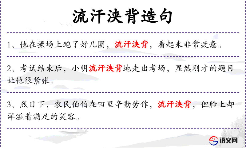 ①形容出汗多,湿透了背上的衣服。②形容惭愧不安之极。