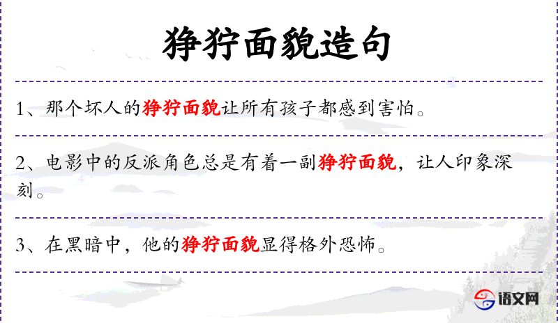 2. 【狰狞面貌】 - 狰狞:样子凶恶。形容面貌凶恶可怕。