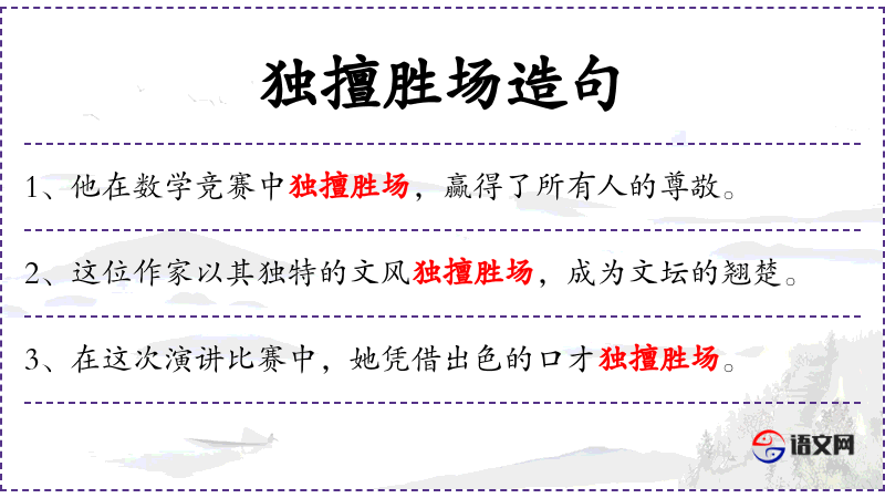 3. 【独擅胜场】 - 擅:独揽;胜场:取胜的场地。形容技艺高超。
