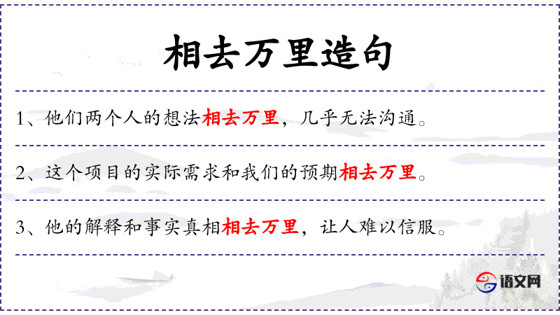 1. 【相去万里】 - 比喻距离很远或差距极大。