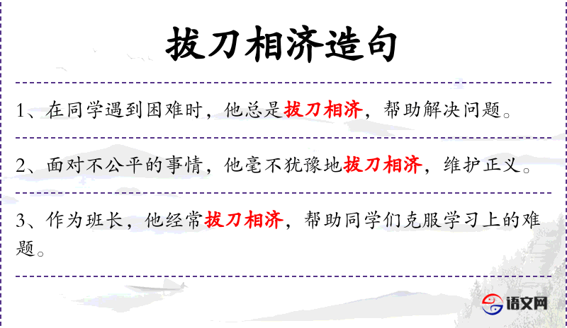 “拔刀相济”这个成语源自**古代武侠文化,常用来形容在关键时刻给予帮助。在现代语境中,它被用来比喻在各种场合下提供帮助和支持。