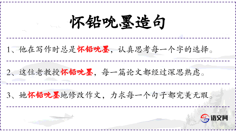 句子:“在准备演讲稿时,他怀铅吮墨,确保每一句话都精准有力。”