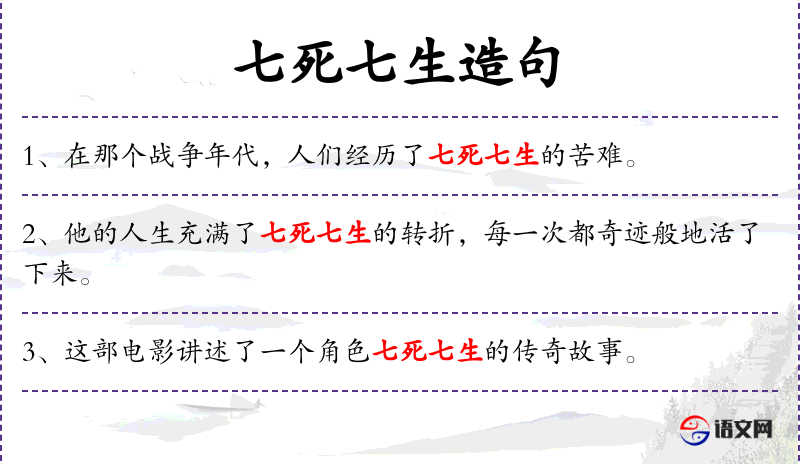 句子:“在那个战争年代,人们经历了七死七生的苦难。”