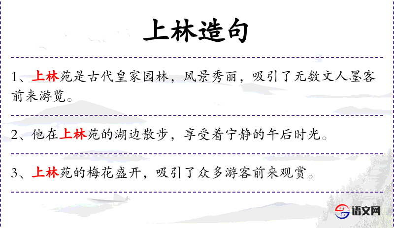 1. 【上林苑】 古宫苑名。有三处一是秦旧苑,汉初荒废,至汉武帝时重新扩建,故址在今西安市西及周至、户县界;二是东汉光武帝时建,故址在今河南洛阳市东,汉魏洛阳故城西;三是南朝宋大明三年建,故址在今江苏南京玄武湖北。