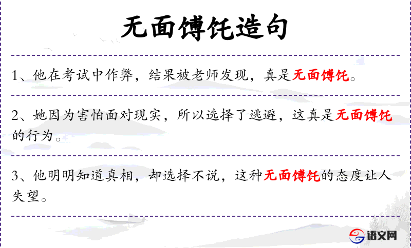 - 文化背景:**文化中,考试作弊被视为不道德和不负责任的行为,因此“无面馎饦”这个成语的使用恰当地表达了作弊者的尴尬和羞愧。
