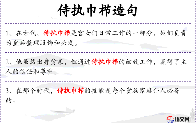 句子:“侍执巾栉不仅是一种职业,更是一种艺术,需要细心和耐心。”