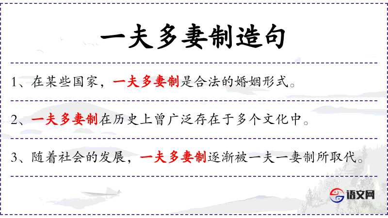 1. 【一夫多妻制】 一个男子同时娶两个或两个以上女子为妻的婚姻形式和家庭形态。始于氏族社会末期。