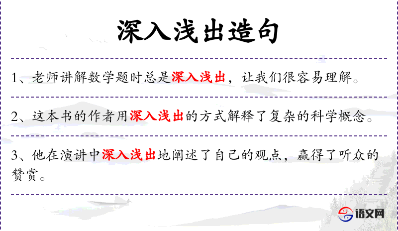 5. 【深入浅出】 指讲话或文章的内容深刻,语言文字却浅显易懂。