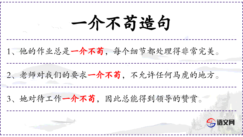 - 一介不苟:形容做事非常认真,一丝不苟。