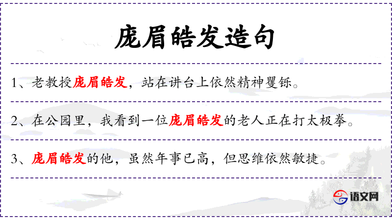 - 庞眉皓发:这个词汇蕴含了**传统文化中对老年人的尊重和赞美。