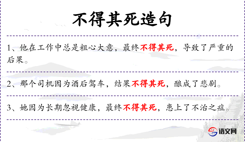 - 不得其死:指死亡的方式或结果不如意,或非正常死亡。