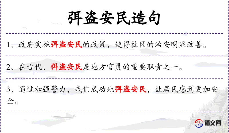 - 相关成语:无明显成语,但“弭盗安民”可以联想到“安民告示”等表达。