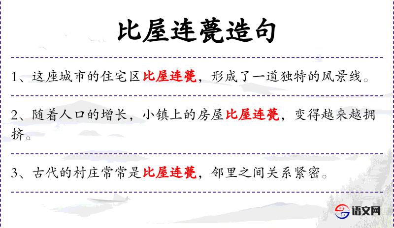 6. 【比屋连甍】 屋舍紧密相连。指住户众多。